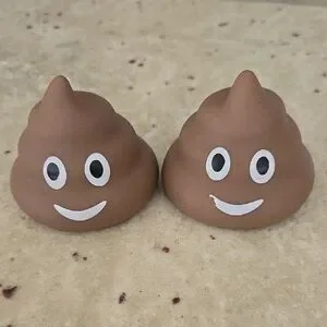 Delight your kids with this fun set of squeaky, smiling poop emoji toys. Perfect for playtime and imaginative adventures. Each measures approx 2.75" x 2.75".