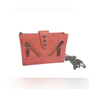 Elevate your style with this chic coral bag featuring a sleek chain strap. Perfect for any occasion.