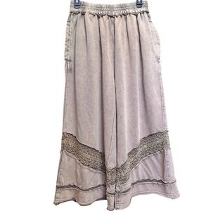 Oli & Hali Mineral Wash Wide Leg Lace Crochet Boho Pants Tan DS7090 L