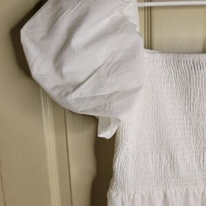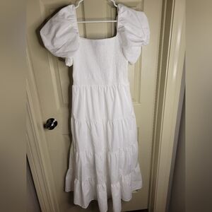 Elegant white maxi dress with puff sleeves. Perfect for any occasion.