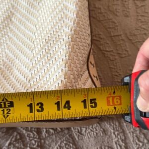 This elegant cream woven shoulder bag is perfect for any occasion. Its stylish design and neutral color make it a versatile addition to your wardrobe. One spot on clasp as shoe in picture peeled otherwise excellent condition. Very roomy inside has big zipper pocket and open pocket.