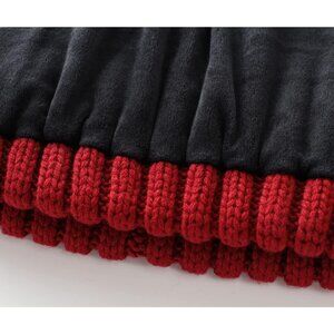 Main: 30% Wool 70% Acrylic with Velvet Lining. Warm cold weather beanie hat for men's and women's.