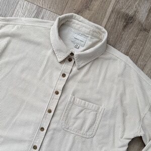 American Eagle Women’s Cream Corduroy Cropped Oversized Shirt Size M