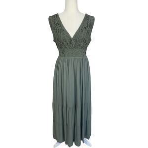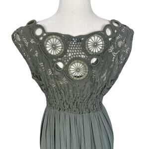 Tempo Paris Lace Crochet Fit & Flare Midi Dress Green Sz M/L Boho Romantic Chic