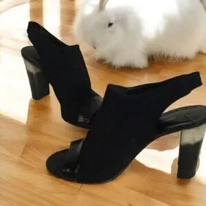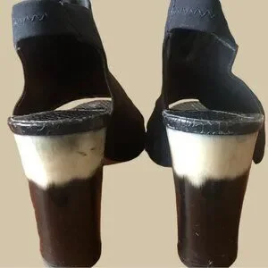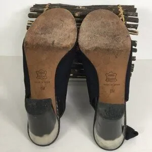 Spanish Made DONALD J PLINER 4” Heel Fabric Sling Back Sandals with Leather Trim. This pair will flex along with your foot movement eliminating foot fatigue. See close up photo of ombré style blending of the heel colors. The soles have some normal wear urban contact scuffs.