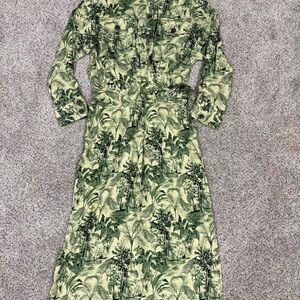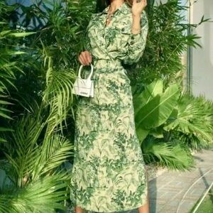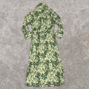 ZARA WRAP Style Green Forest Print PAREO Linen Blend Maxi DRESS SideSlit Women M