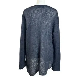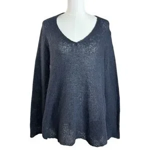 Wooden Ships Wool Mohair V Neck Navy Open Knit Tunic Sweater Size Medium Large