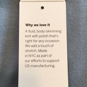 A fluid, body-skimming knit with polish that's right for any occasion. We add a touch of stretch. Made in NYC as part of our efforts to support US manufacturing.