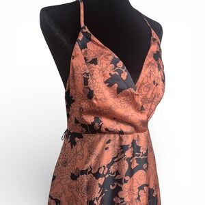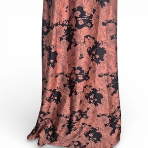 Lulus Size M Floral Brocade Halter Maxi Dress Rose Gold Black VNeck Evening Gown