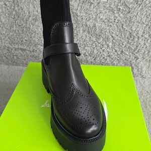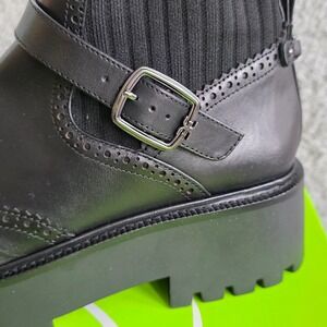 Sam Edelman Elly Black Leather Sock Boot Wingtip Lug Sole Womens Size 10M NEW