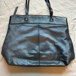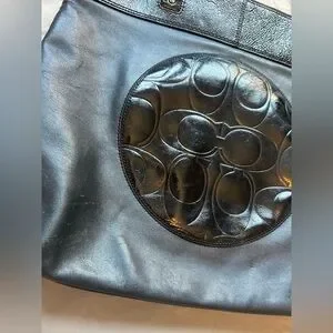 Coach Black Leather Tote Bag Signature Embossed Patch Zip Top Shoulder Purse