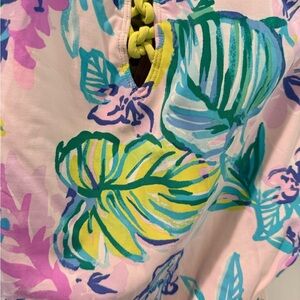 Lilly Pulitzer one pieces Jules style swim suit with a deep V in the front and back with lacing lattice detail, removable, adjustable straps and sweetheart neckline with build in moulded cups