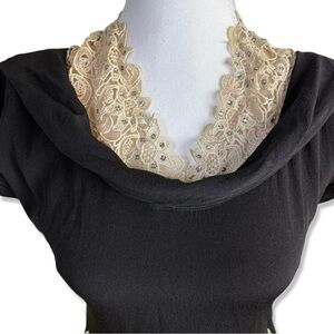 Polly Brief Black A Line Dress with Lace Collar and waist accents