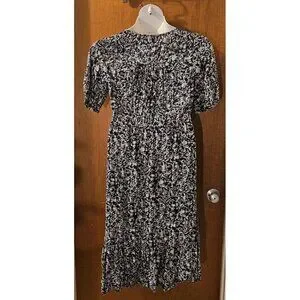 This beautiful Lucky Brand maxi dress is perfect for any occasion. The dress features a blue and white leaf pattern that adds a colorful touch to your wardrobe. It has a V-neckline, short sleeves, and a snap closure for easy wear. The dress is made of a lightweight and machine washable polyester and viscose blend, making it perfect for travel, workwear, and everyday wear.