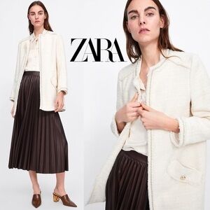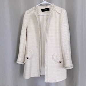 Zara Cotton Wool Ivory Ecru Tweed Long Sleeve Middle Cardigan XS