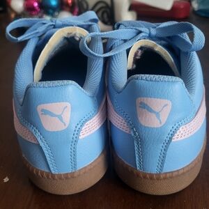 Puma Palermo Womens Blue Suede & Pink Trainers Sneakers Size 8