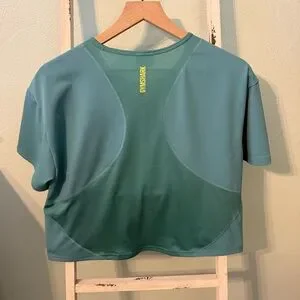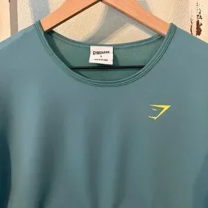 Gymshark Teal Active Crop Top with Yellow Logo Size S Women
