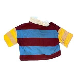 Forever21 Striped Drop-Sleeve Cropped Polo Shirt Size M