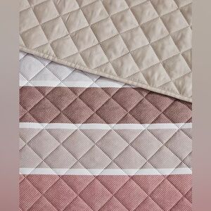 Keep your decor fresh with this king quilt set from Addison Park, reversible from bold stripes in soft tones to a neutral solid color.