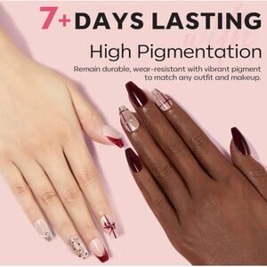MODELONES RED NAIL POLISH SET OF 6 COLORS, BROWN-NUDE-BURGUNDY-RED-GOLD AND RED GLITTER. FAST DRY MINI MANICURE KIT FOR WOMEN AND GIRLS. WORK BETTER WITH BASE AND TOP COAT. QUICK EASY AND SMOOTH APPLICATION, 150 DEGRE FAN SHAPED BRISTLES, HIGHER COVERAGE.