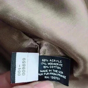 Material: Faux fur (68% acrylic, 17% modacrylic, 15% cotton), silk-blend lining.