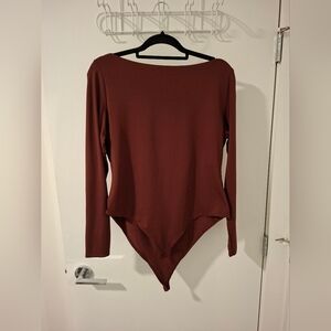 H&M Women's Burgundy/Brown Boat-neck Long-sleeve Bodysuit (Size XL)