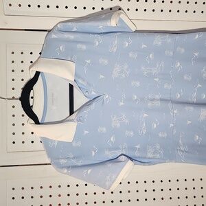 Land's End Size Medium Light Blue Short sleeve Polo Dress Nautical Print