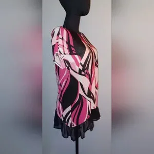 Est 1946 Pink Black Road to Rio Ruffle Hem Blouse