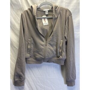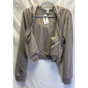 Better Together Sz Large Brown Beige Crop Zipper Hoodie Soft Pockets Athleisure