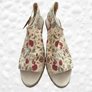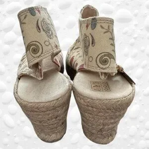 Hardly used. Wedge heel 3" Platform 1". Handcrafted from finest materials such as knitted jute, canvas and cotton canvas. The insole is soft to make you feel comfortable all day long. These shoes feature bold and vibrant colours and designs that make them stand out in the crowd.