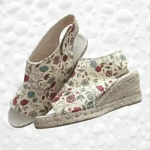 ESPEDRILLES FLORAL CANVAS Peep-toe Cut-out back.