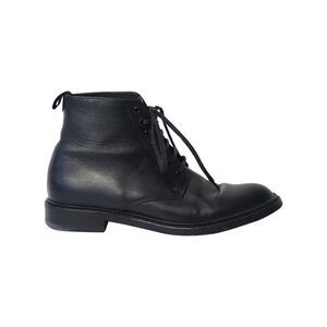Handcrafted from black leather and styled to an ankle-length, these boots are on-point with style. They come with a lace-up front and sturdy soles. These boots are in like-new condition with minor scuffing from use on the sole (original sole). Comes with original box.