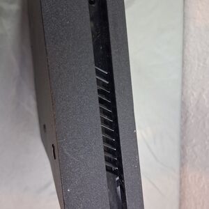 Sleek black gaming console with iconic logo.
