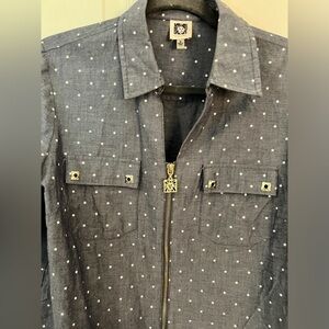 ANNE KLEIN M Chambray Denim Zip-Front Top