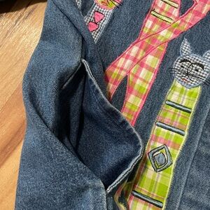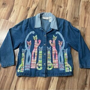 VTG Tantrums Patchwork Cats Denim Lightweight Shirt Jacket Sz L
