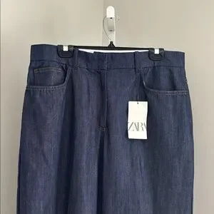Zara Dark Blue Denim Wide-Leg Trouser High Waist Jeans Women’s Size 12