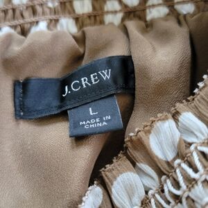 J. Crew Smocked-Waist Polka Dot Midi Dress in Brown, Size L