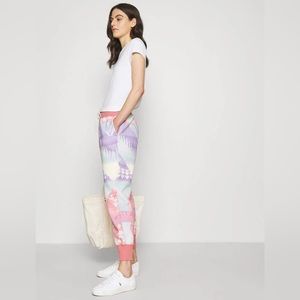 Stylish joggers with a pastel mountain pattern. Features a drawstring waist and ribbed cuffs. Perfect for casual wear.