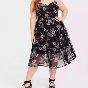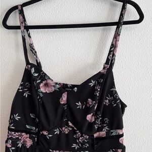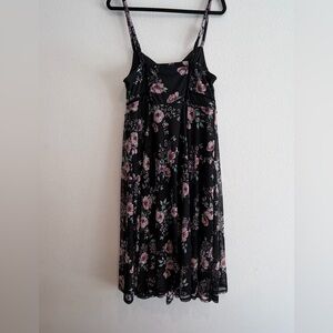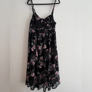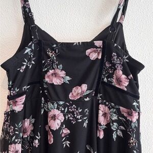 Gorgeous black dress with pick floral accents. This dress is so comfortable and flowy, feels elegant but not over dressed.