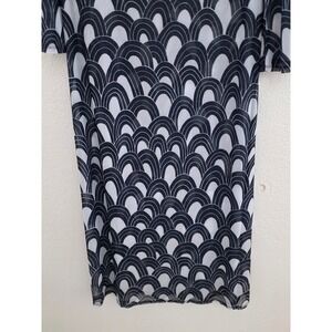 Trina Turk Navy White Arch Print Mesh V-Neck Ring Cover-Up Dress 3076265M Medium