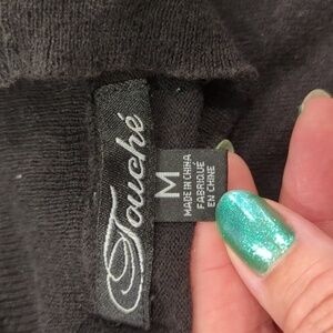 Light weight sweater with a high neck that provides a pefect backdrop for a statement necklace. Fantastic feature arms with a ribbon laced all the way from top to bottom with a bow at the bottom. I only wore this a few times, so its on fantastic condition. Measurements: p2p 17", stretches to 23" arm length 24" shoulder to hem 22" This item qualifies you to buy a wooden hanger at just $5. Wooden hangers help clothes maintain their shape. See my $5 hanger listing. ✅smoke free home ✅pet friendly home ✅recycled packing materials ✅Collectible Vintage Antique NO Poshmark account? NO PROBLEM!! Create an account today and use my code ATGRANNYSCLOSET to save C$15 off your first purchase! 🤩