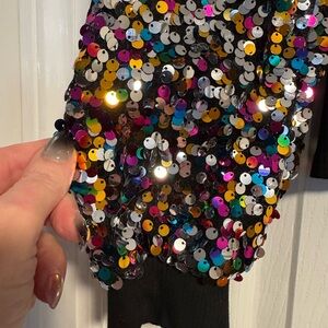 Chic black top with shimmering sequin accents. Ideal for evening wear.
