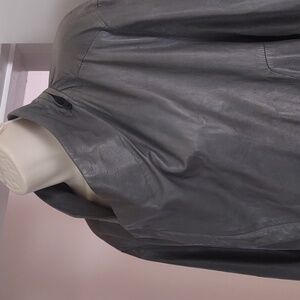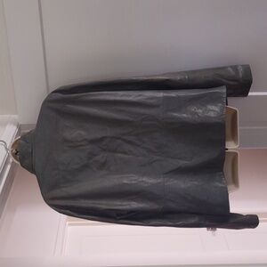 Sleek & Chic stylish jacket with asymmetrical zip. Lots of classic Helmut Lang details including a zipper around the neck. I would describe the color is sage green. It's very versatile, takes on a gray shade as well as green.