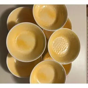 Tommy Bahama Yellow Crackle Rustic MELAMINE Set of 8 Bowls Salad Cereal 7.25”