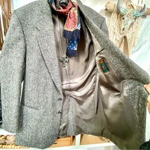 This REAL MAGEED Donegal tweed Irish boyfriend blazer in Soo on trend and ONE OF A KIND amazing for layering over any boho ensemble ✨this gem comes in amazing vintage condition like new pure IRISH virgin WOOL made in 🇮🇪 IRELAND amazing quality AND CRAFTSMANSHIP ⭐️It comes with the wool trademark tag shown in one of the pics and rare vintage leather knot buttons which is one of my absolute fav feature 🤩✨