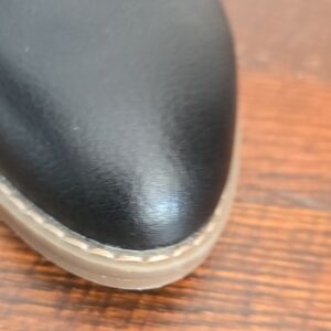 Sleek black shoe/ boots. Slip-on design. Perfect for versatile wear.