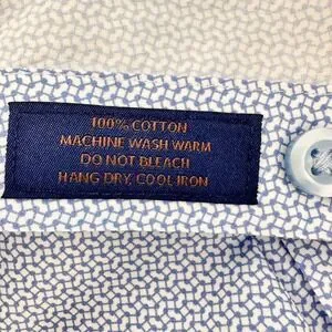 David Donahue Men's Dress Shirt Blue Geometric Pattern 16.5 32/33 100% Cotton