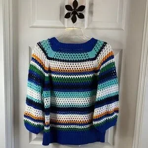Tribal Multi-Color Striped Sweater 3/4 Sleeves Open Weave Like New Size Large