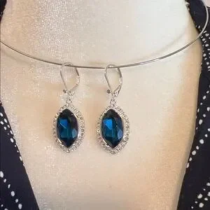 NWT: gorgeous, blue stone, teardrop, shape, with CZ like stones. Lobster claw.