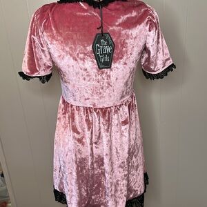 NWT Dolls Kill Grave Girls Drinking Your Blood Velvet Mini Dress